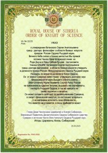 By OUR decree, Sergey Anatolyevich Katansky, Grand Doctor of Philosophy in the field of martial arts, is confirmed in the position of Prior of Russia of the International Order of Knights of Science.